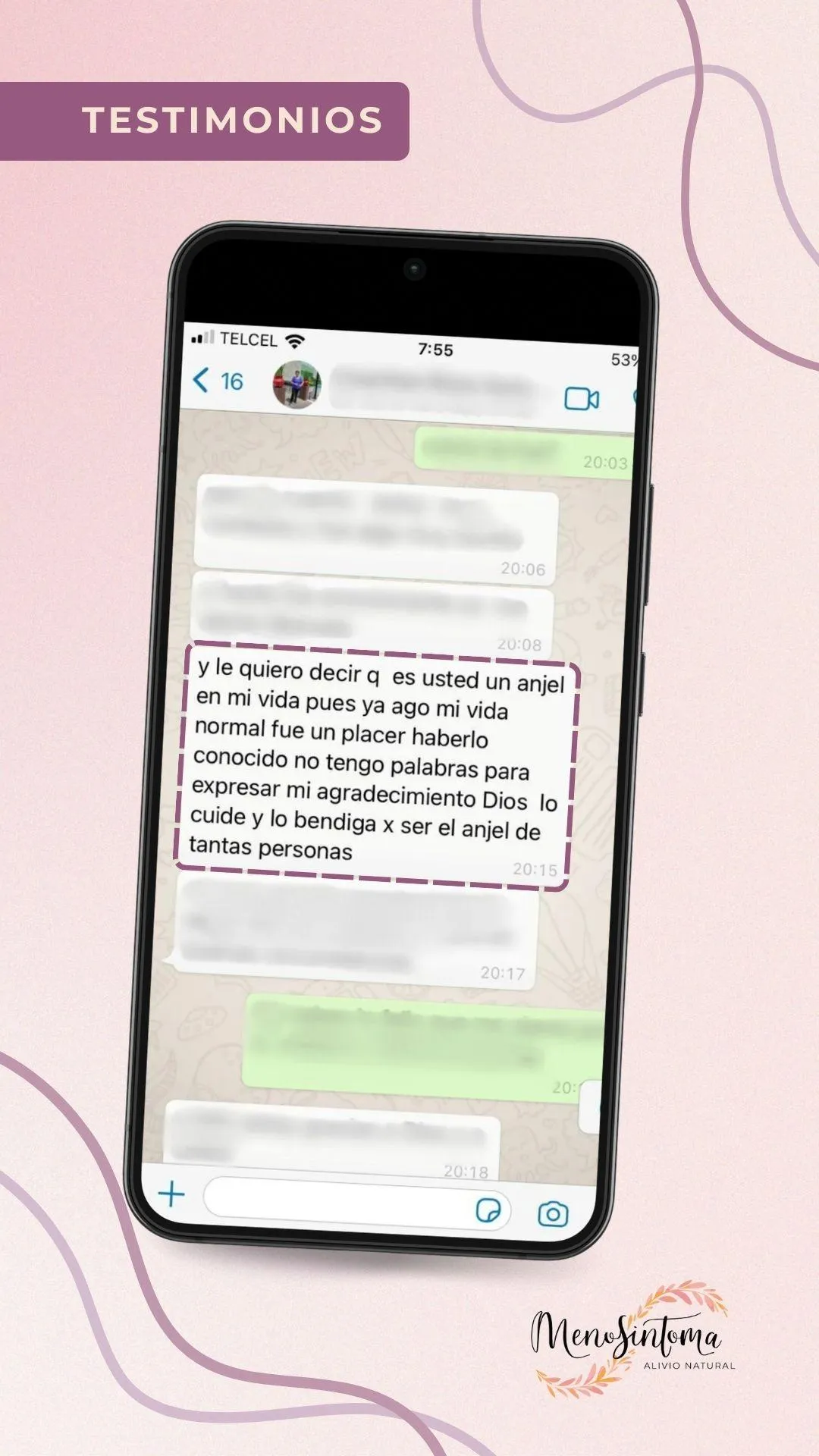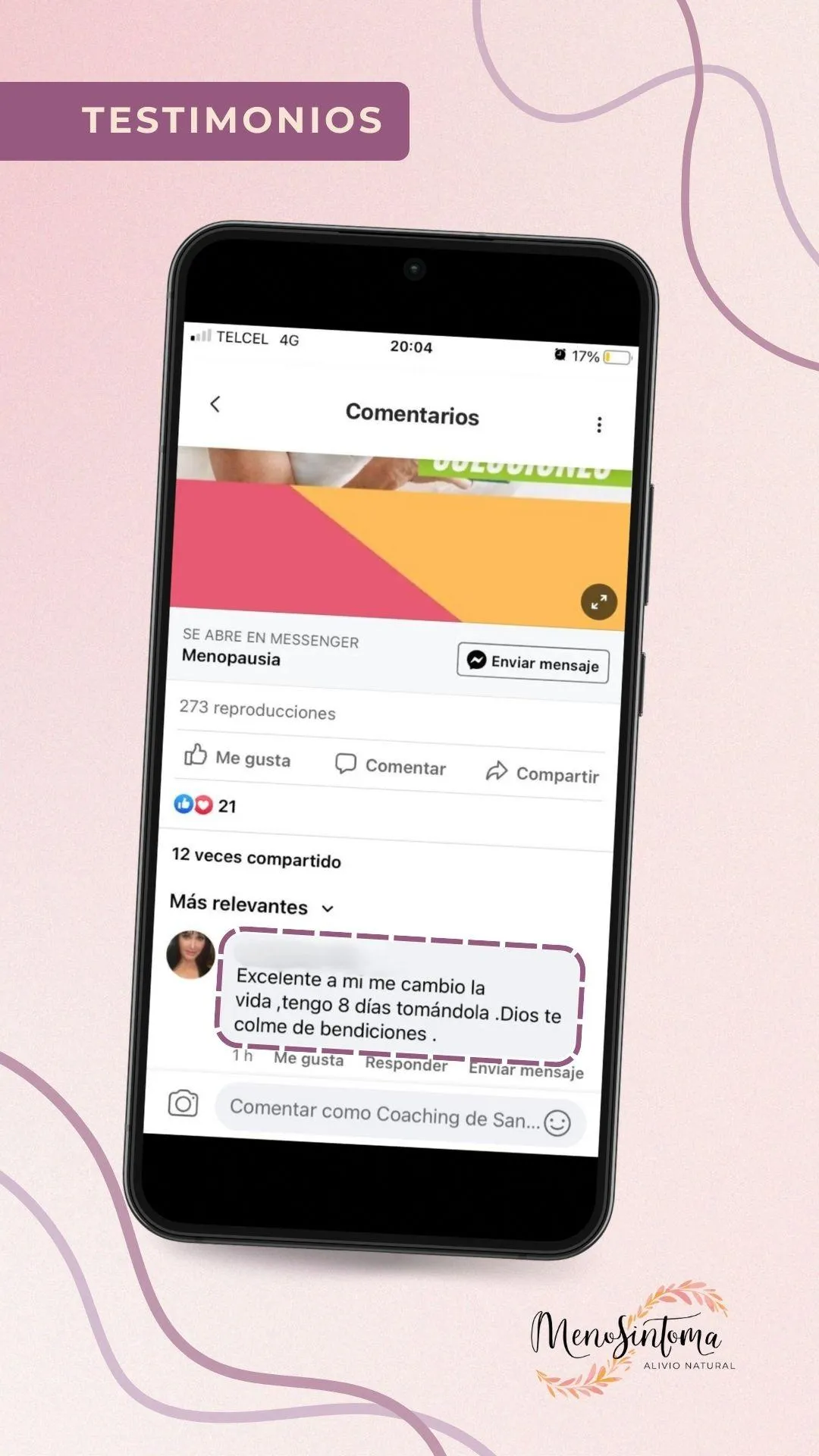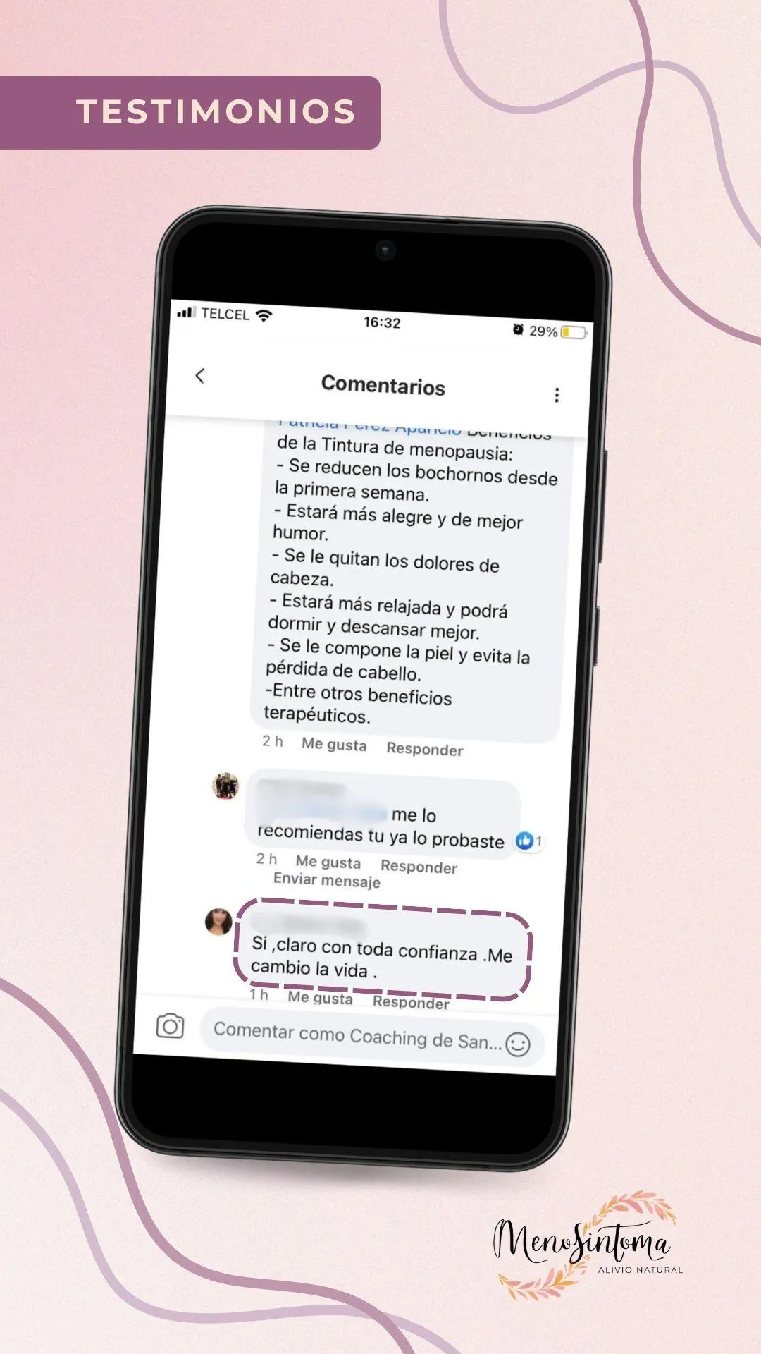 Los médicos me dijeron que necesitaba antidepresivos por mis cambios de humor. ¡Era la menopausia! MenoSíntoma me devolvió mi estabilidad emocional en 2 semanas. Mis hijos me dijeron: 'Mami, ya no tienes cara de enojada todo el tiempo'